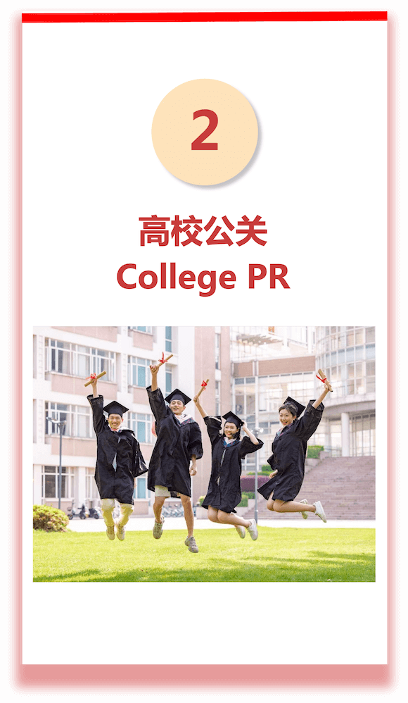 With the mission of "Your Loyal Helper in Brand Rejuvenation", the company provides efficient and accurate one-stop marketing and promotion services for enterprises by virtue of keen creative insight, excellent marketing planning ability, rich experience in event management and all-round campus media resources. It has become a supplier in the world's top 500 brands such as P & G, Tencent, JD, China Unicom and ByteDance.